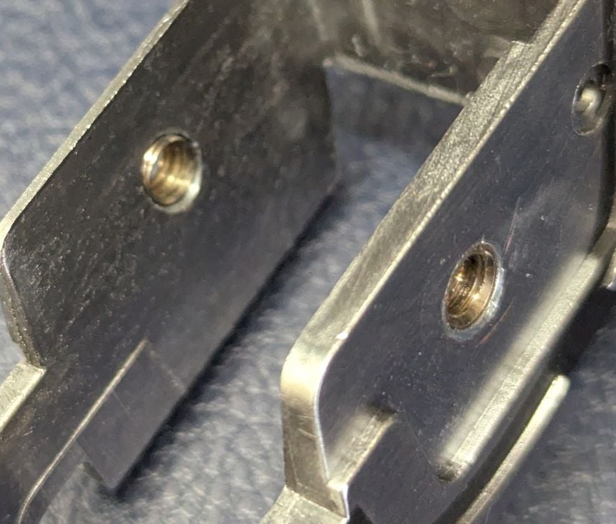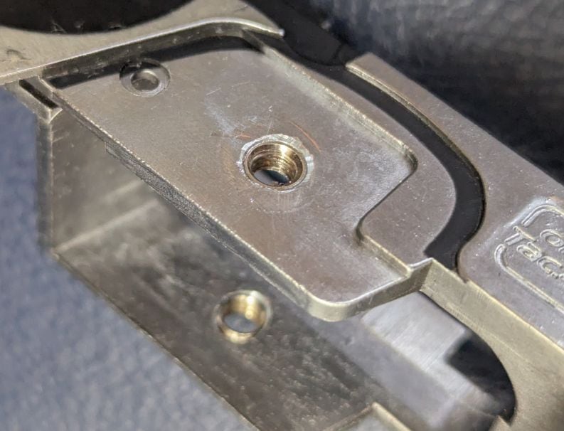 マルイハイキャパ用シャーシのグリップタップ付替加工(真鍮ナット埋込)サービスです。